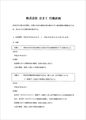 次世代育成支援対策推進法および女性の職業生活における活躍の推進に関する法律に基づく一般事業主行動計画