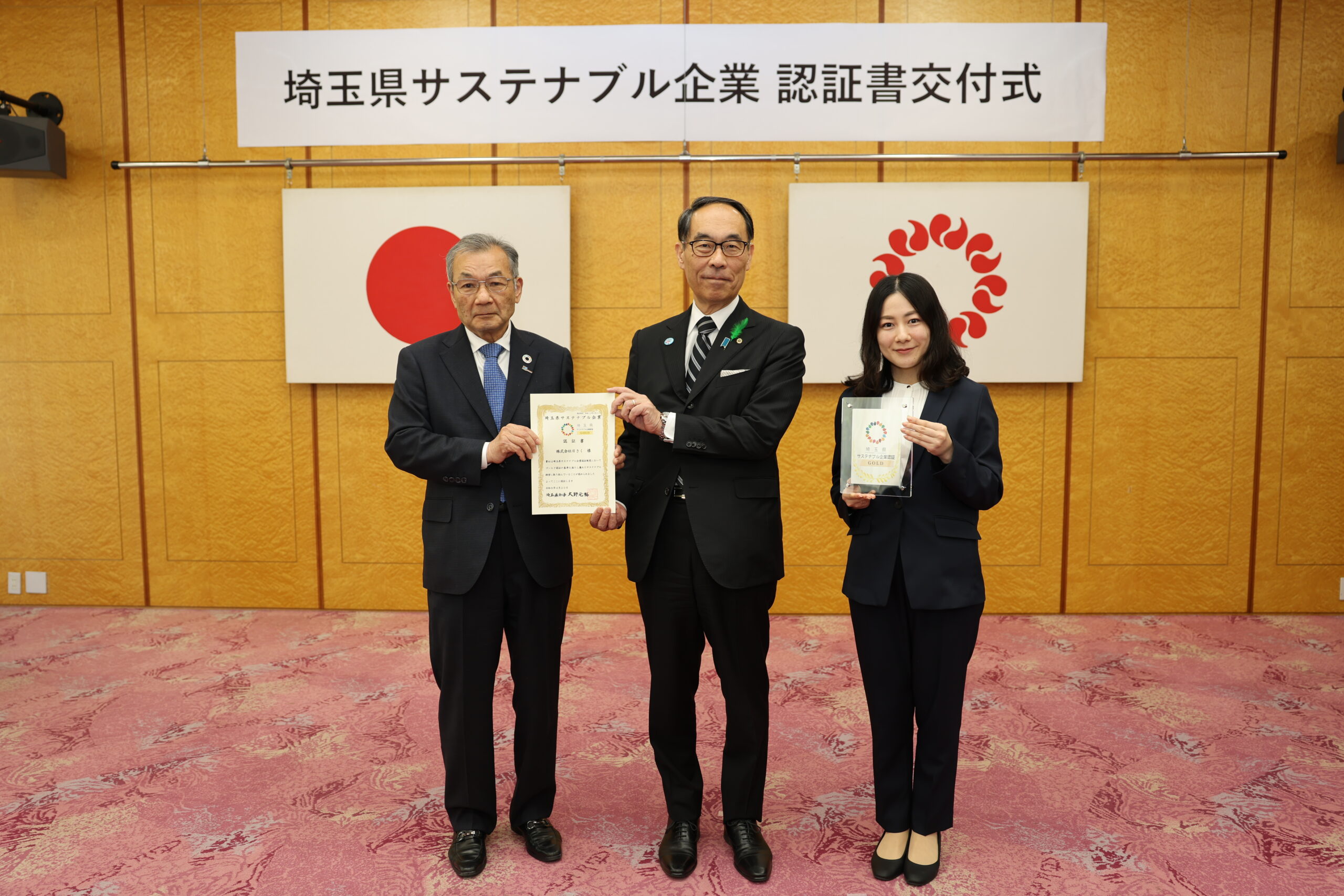 「埼玉県サステナブル企業認証制度」とは、「日本一暮らしやすい埼玉」を実現するため、10年、20年先を見据え、高いレベルでサステナブル経営に取り組んでいる企業を埼玉県が認証するものです。